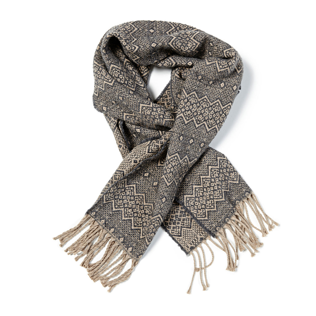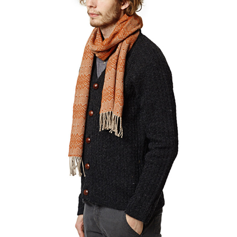 - Dömufyrirsætan klæðist Garðari trefli, Njáli herrapeysu í stærð S og Fitjum buxum í stærð 36